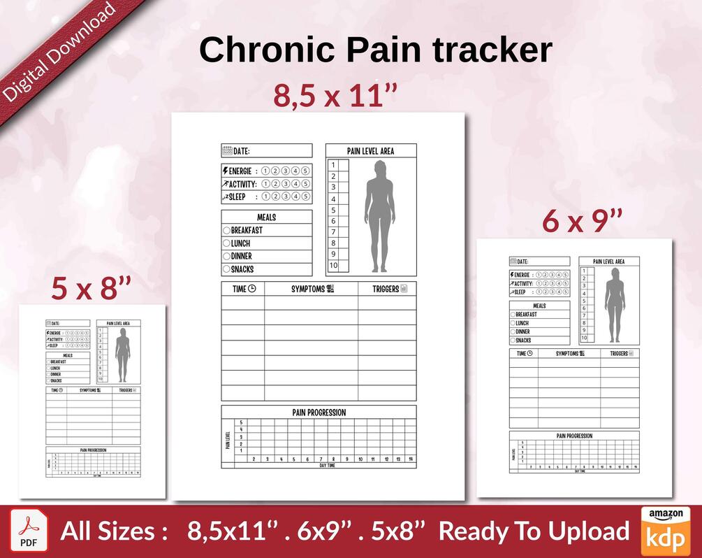 Chronic Pain tracker KDP interior Ready To Upload, Sizes 8.5×11 6×9 5×8 inch PDF FILE Used as Amazon KDP Paperback Low Content Book, journal, Notebook, Planner, COMMERCIAL Use