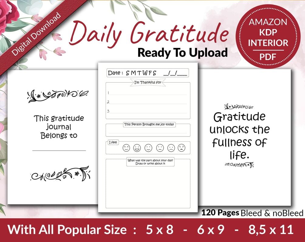 READY TO UPLOAD interior for creating Daily Gratitude Journal on Amazon KDP (Kindle Direct Publishing)